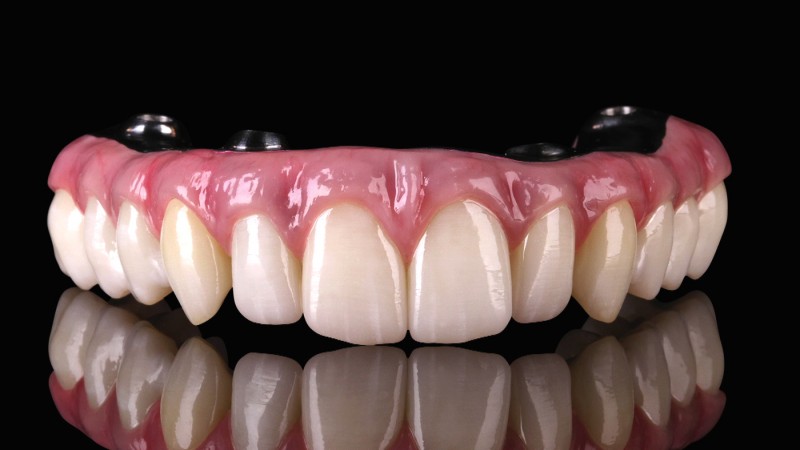 Schritt 5 – Fertigstellung der Zahnbrücke | Sitzt das Gerüst perfekt, werden nun im Zahnlabor die Verblendungen des Zahnersatzes angefertigt und die Brücke fertiggestellt. |
