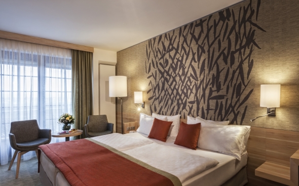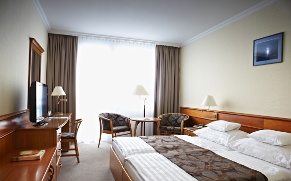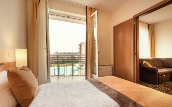 Das Hotel ist das erste All-Inclusive Wellnesshotel von Hévíz, dementsprechend werden ernsthafte, professionelle Dienstleistungen angeboten. In den 224 Zimmern, 6 Suiten und 1 Familienapartment gehören Telefon, Minibar, Radio, Fernseher und Bademäntel zur Standardausstattung des Resorts.