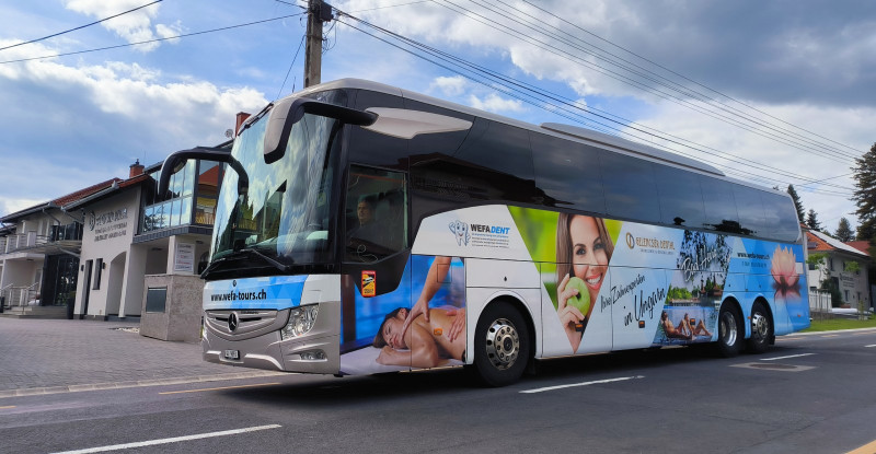Seit Herbst 2023 arbeiten wir eng mit dem in der Schweiz ansässigen, beliebten und erfahrenen Reisebüro WEFA-Tours zusammen. Mit dieser Kooperation ist eine zuverlässige Basis geschaffen, dass alle Besucher aus der Schweiz nun bequem und sicher reisen können. WEFA-Tours organisiert seit mehr als 25 Jahren Busreisen nach Hévíz. Jedes Jahr entscheiden sich mehr Menschen für diesen Service des Reisens in top modernen Luxus-Fernreisebussen, um sicher und entspannt in die beliebte Kurstadt Hévíz zu gelangen.